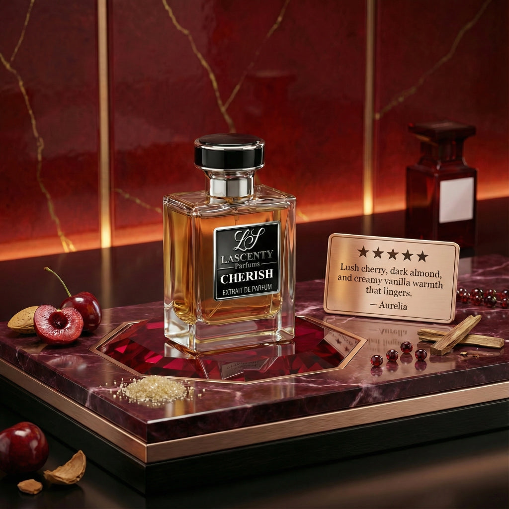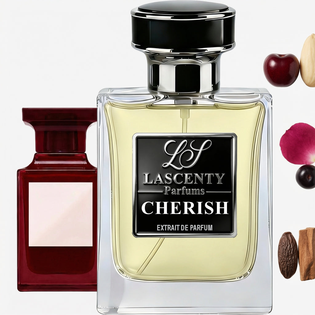 Cherish by LaScenty is a high-quality clone inspired by the seductive Tom Ford Lost Cherry. This long-lasting dupe smells like juicy black cherry, creamy almond, and warm woods—rich, addictive, and full of contrast.